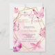Baisers à papillon et souhaits doux pour bébé avec cette adorable invitation de baby shower à thème rose ornée de mignons papillons d'aquarelle en rose doux.