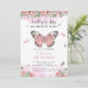 Une carte douce ornée de papillons aquarelles en rose et menthe doux, nichés parmi un jardin floral doré faux. Présentant la phrase charmante 'Baisers de papillon et vœux d'anniversaire', cette invitation est parfaite pour une célébration printanière pour votre petite fille. Personnalisez-la avec ses détails pour rendre son jour encore plus spécial !