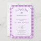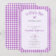 Cette invitation de baby shower Baisers de papillon et Baby Wishes à carreaux violets avec des coins entaillés serait l'ajout parfait à votre célébration. Avec un gingham violet clair et un papillon simple sur un fond lavande, c'est un choix neutre pour une baby shower ou une fête de révélation du sexe.