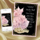 Invitation à boule basket en or noir rose avec de jolis baskets en diamant, robe et tiare sur un joli arrière - plan rose, noir et or. Vous pouvez modifier la couleur de bordure rose et la couleur du texte. Les invitations aux fêtes baskets roses, noires et dorées sont facilement personnalisées pour votre événement en ajoutant simplement vos détails.