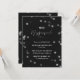 Invitation élégante et mystérieuse à une soirée masquée. L'invitation est principalement noire avec des reflets argentés et de beaux détails typographiques. Elle comporte également un petit masque argenté. L'invitation à la soirée indique : Bal de Mascarade.