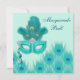 Invitation Bal masqué Paon Bleu Vert Aqua