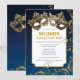 Invitation vos invités à une boule glamour Halloween masquerade avec cette magnifique invitation. Doté de masques en or, d'un arrière - plan de bokeh et de tourbillons de parties scintillant en or, il donne le ton parfait pour un événement élégant et mystérieux.