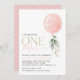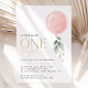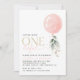 Invitations amis et famille dans le style et donner le ton pour votre journée spéciale avec cette charmante invitation d'anniversaire. Le design présente un ballon rose avec des feuilles d'eucalyptus sur arrière - plan blanc.