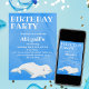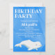 Ce beau design présente une baleine beluga sur un fond bleu vif. Personnalisez facilement avec les détails de votre fête !
