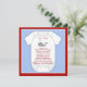 Adorable invitation à la douche bébé rouge et bleu avec un arrière - plan rouge, blanc et bleu. Cette adorable invitation au baby shower de baleines rouge et bleu est facilement customisée pour votre événement en ajoutant les détails de votre événement, le style de police, la taille et la couleur de police et le libellé.