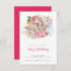 Invitation Ballerina Chat Florals Fille rose 4e fête annivers