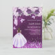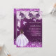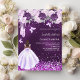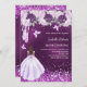 Pour une Quinceañera élégante. Un arrière - plan violet de couleur inégale. Décoré de confettis, chaussures de ballerine, papillons, roses et une fille en robe. Personnalisez et ajoutez le nom, l'âge/le texte et les détails du parti. Le nom est écrit avec un script de style manuscrit