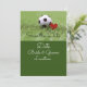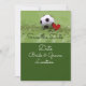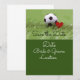 Ballon de football avec cœur rouge sur une invitation de mariage vert enregistrer la date