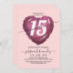 Cette invitation de fête d'anniversaire de quinceañera girly, moderne et mignonne est parfaite pour la fille branchée et élégante. Elle présente un ballon en forme de cœur pailleté rose imprimé faux avec un grand "15" sur un fond rose blush simple. C'est un design élégant, cool, joli et chic !