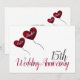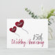 Invitation moderne pour les 15 ans d'anniversaire de mariage avec un fond blanc et des ballons en forme de pétale de cœur rouge.