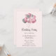 Invitation à une fête d'anniversaire avec une illustration d'un bouquet de ballons de couleur rose et gris argent.