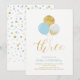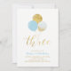 Invitation Ballons Bleus et Dorés Trois 3e Anniversaire