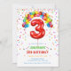 Invitation Ballons Confetti lumineux colorés 3e anniversaire