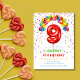 Ces invitations jolies et joyeuses à la fête d'anniversaire comportent un ballon rouge numéro 9 avec des ballons colorés et des confettis. Personnalisez les invitations de fête d'anniversaire en ajoutant le nom de votre enfant, son âge et les détails de la fête.