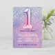 Invitation Ballons d'1er anniversaire violet et rose