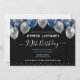 Ballons élégants en faux argent et en parties scintillant bleue sur la bordure supérieure. Tout le texte est ajustable et facile à changer pour vos besoins de partie. Super élégant à l'exception de la date anniversaire design modèle de fête. n'importe quelle année, l'âge peut être changé. Élégante typographie moderne et élégante
