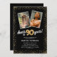 Célébrez le grand jalon de quatre-vingt-dix ans avec nos élégantes invitations à la fête d'anniversaire. Avec un arrière - plan noir tendance personnalisable, un modèle photo d'alors et d'aujourd'hui, et des accents dorés, ces invitations laisseront une impression durable. Les détails du ballon en hélium doré apportent une touche de magie, tandis que le modèle de texte moderne de 90e anniversaire est facile à personnaliser sans effort. Parce que le style n'a pas de limite d'âge !