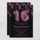 Cette invitation d'anniversaire élégante et glamour présente le nombre 16 en impression léopard avec des confettis roses. Le texte combine une écriture manuscrite et des polices sans serif modernes pour un look classe et sophistiqué.