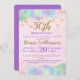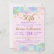 Une belle fête de 50e anniversaire Invitation. Le design est composé d'étoiles dorées et de ballons irisés pastel sur un arrière - plan rose pâle au texte violet et doré. Un joli design invitant vos invités à une fête du 50e anniversaire. Facile à customiser avec les détails de votre propre fête. Tout le texte peut être modifié au besoin.