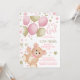 L'invitation à baby shower pour filles roses et or mignonne comporte un ours en peluche aquarelle volant sur un tas de ballons avec une aspersion d'étoiles. Oeuvre de KL Stock.