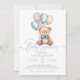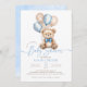 Ours en peluche avec ballons bleu garçon baby shower invitation.