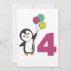 Le manchot avec des ballons pour le quatrième anniversaire. Pour chaque enfant qui fête ses quatre ans. Jolies manchots pour le 4ème anniversaire des enfants.