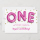Invitation Ballons Rose Chaud Points Dorés UN 1er Anniversair