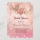 Pour un Baby Shower glamour. Un fond dégradé rose gold et rose. Décoré avec des éléments rose gold, des gouttes roses, un effet peinture qui coule et des ballons. Personnalisez et ajoutez le nom de la future mariée et les détails de la fête. Le nom et le texte : Bridal Shower sont écrits avec un style d'écriture manuscrite