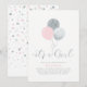 Invitation Ballons roses et argent | C'est une fille - Baby S