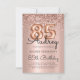 Célébrez votre jalon en style avec cet élégant ballon Rose Gold 85th Birthday Invitation. Doté de ballons roses chatoyants, d'une calligraphie sophistiquée et d'un cadre de parties scintillant brillant, le tout face à un arrière - plan de papier métallique rose roux doux. Parfait pour une soirée glamour et inoubliable de 85ème anniversaire !