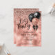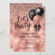 Glam noir rose rose rose Parties scintillant dorée Confetti Ribbon Balloon Noir Fête N'importe quel âge Anniversaire Invitation