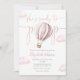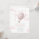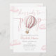 Cette charmante invitation au baby shower comporte une jolie montgolfière rose et des nuages, ainsi qu'une élégante typographie de script. Avec le code QR de votre registre et les détails de l'événement au contraire. Conçu par Thisisnotme©