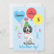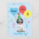 Vous êtes invité à un anniversaire Paw-ty avec ce mignon chiot espagnol coker anglais vêtu de casquettes de fête, entouré de ballons colorés et de serpentins. Le texte peut être facilement personnalisé. Fournitures de partie correspondant disponibles.