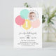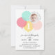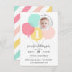 Balloons Élégants Modernes 1ère photo Invitation Anniversaire - Coloré Rose Bleu Jaune Garçon