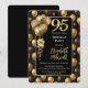 Invitation Balloons élégants noirs et dorés pour 95e annivers