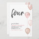 Fille Blancs rose Ballons Simple 4ème anniversaire Invitation