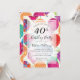 Invitation vos invités de 40e anniversaire dans le style avec cette invitation de carte plat moderne avec un arrière - plan de ballons avec des motifs fractaux colorés en rose, rouge, violet et or. Les détails de votre fête à personnaliser sont en typographie noire sur une couche opaque blanche. Le dos de la carte a un motif de ballons colorés sur blanc. Conçu par ©Tim Coffey et Susan Coffey.