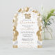 Cette élégante invitation Quinceañera présente une arche de ballons de parties scintillant scintillante dans différentes nuances de blanc et d'or avec ballon d'or 15. Des banderoles et des confettis en blanc et or complètent l'ambiance du parti. Le dos présente votre photo préférée. Facile à customiser en cliquant sur "Personnaliser".