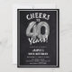40 ans de fête ! Ces invitations de fête du 40e anniversaire sont conçus avec le titre "Cheers to 40 Years!". Doté d'un arrière - plan rustique en damier, de ballons d'hélium numéro d'argent quarante, d'une typographie blanche branchée et d'un simple modèle de fête d'anniversaire qui est facile à customiser.