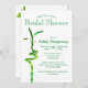 Cette invitation à la douche nuptiale au format vertical présente une tige de bambou chanceux en spirale sur le devant avec les détails de la fête modèle. Le coin supérieur gauche est entrelacé de deux tiges de bambou et les feuilles de bambou sont dans le coin inférieur droit. Personnalisez le texte dans les champs modèle ou cliquez sur personnaliser pour sélectionner le style, la taille et la couleur de la police que vous préférez.