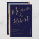 Un élégant, chic et moderne bleu marine et bande d'or géométrique avec une police de caractères moderne en caractères gras, ajoutez votre photo à l'arrière.