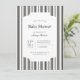 Bébé classique, intemporel noir et blanc rayé vertical show invitation. Style et disposition de police personnalisables, avec un arrière-plan à motif simple avec un motif à bande géométrique propre. Parfait pour les invitations de baby shower unisexe, les invitations de douche pour bébé garçon, et les invitations de baby showers rétro. À PROPOS : Elégante invitation au baby shower noir et blanc, invitation baby shower rayé classique, design minimaliste d'invitation au baby shower, carte baby shower moderne neutre genre, papeterie baby shower monochrome, invitation noir et blanc intemporelle, invitation baby shower chic et sophistiqué, faire-part de traditionnel, invitation à baby shower formelle stylisée, douche simple et classe, audacieux motif d'invitation motif, invitation à thème neutre