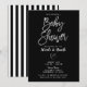 Invitation Bandes noires et blanches Baby Shower chic argenté