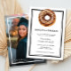 Célébrez votre diplômé en style avec cette invitation Donut and Degrees! Doté d'un arrière - plan blanc, d'une élégante typographie classique inspirée d'un diplôme, et d'une magnifique illustration de beignes chocolat à l'aquarelle peinte à la main, ce design allie à merveille sophistication et douceur. Le dos comprend un espace réservé spécial photo, vous permettant de personnaliser l'invitation avec une photo du diplômé. Parfait pour une soirée de remise de diplômes inoubliable, cette invitation est entièrement personnalisable pour correspondre aux détails de votre événement.