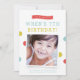 Une invitation festive et amusante pour une fête anniversaire de enfant avec une bannière dessinée à la main et de grands points de confetti entourant la photo du garçon ou des filles d'anniversaire.
