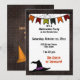 Personnalisez le recto et le verso de cette invitation de fête d'Halloween créée sur un fond grunge pointillé noir, accentué d'une bannière de fête décorative, d'un chapeau de sorcière mignon et d'une toile d'araignée. Modifiez simplement vos détails dans l'éditeur de texte zazzle facile. Ajoutez des assiettes, des tasses, des serviettes et plus encore à partir d'une grande collection de mélange et d'assortiment qui coordonne avec ce design.