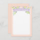 Cette papeterie personnalisée et sucrée présente une bannière de violet lilas avec des sprigs de fleurs en violet et vert menthe sur un cadre rose roux faisant de cette carte de note personnalisée un choix idéal pour une petite fille qui commence tout juste à apprendre l'art de la correspondance écrite et des notes de remerciement.