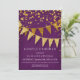 Invitation à la douche de Couple. Élégant. Moderne. Chic. Glam sobre - avec des bannières brillantes en deux nuances de parties scintillant dorée avec des confettis scintillants en différentes tailles et à l'ombre d'or. Des étoiles brillantes brillantes brillent par leur éclat d'étoile. Un texte de typographie très contemporain qui n'est rien d'autre que traditionnel. Il est simple et court. Il dit à vos invités : "Nous organisons une fête et ce sera la fête de toute une vie !" Pour la mariée et mariée élégante mais non traditionnelle. COULEURS : violet foncé profond aubergine violet et or, parties scintillant dorées. Convient particulièrement aux mariages d'automne ou d'hiver, aux fêtes de la Saint-Sylvestre, aux fêtes d'anniversaire et aux annonces de fêtes d'anniversaire.