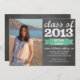 Faites un faire-part de graduation avec ce carte photo facile à customiser. Le design intègre votre photo de classe ou votre instantané préféré contre un arrière - plan de tableau noir gris. Personnalisé avec votre année de classe, nom et information de graduation.